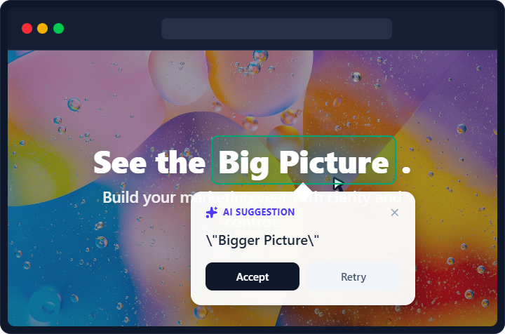 En molnbaserad allt-i-ett-plattform för marknadsföring som samlar planering, budgetering, produktion, content, korrekturgranskning, kampanjer, automation, CRM och analys i en sammanhängande arbetsyta.